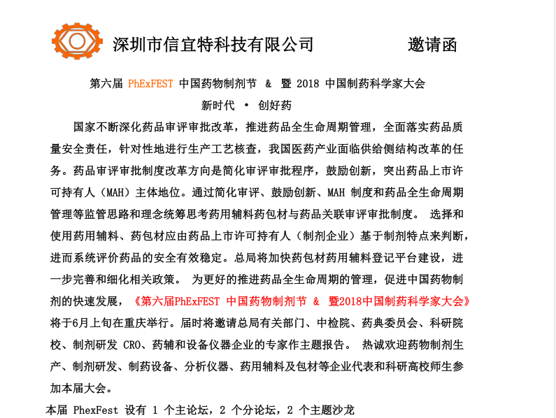 第六屆PhExFEST制劑節(jié)邀請(qǐng)函