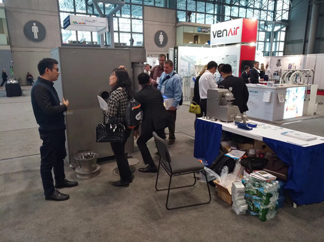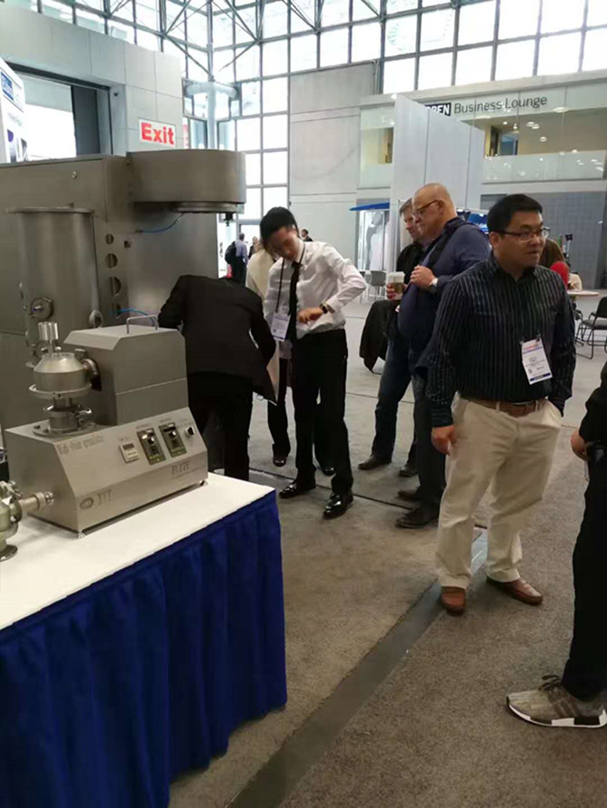Interphex 2018在2018年4月17日~19日如期在紐約Javits中心舉行,深圳市信宜科技有限公司攜公司明星產品——流化制粒包衣機、高速濕法混合制粒機、擠出滾圓機(集擠出、滾圓、干燥、包衣于一體)、高效包衣機等參加此次展覽會,與國際制藥工業企業進行面對面的溝通和交流。我們獨特的設備吸引了不少制藥同行的駐足與觀望,現場的工作人員分別為他們演示與講解。