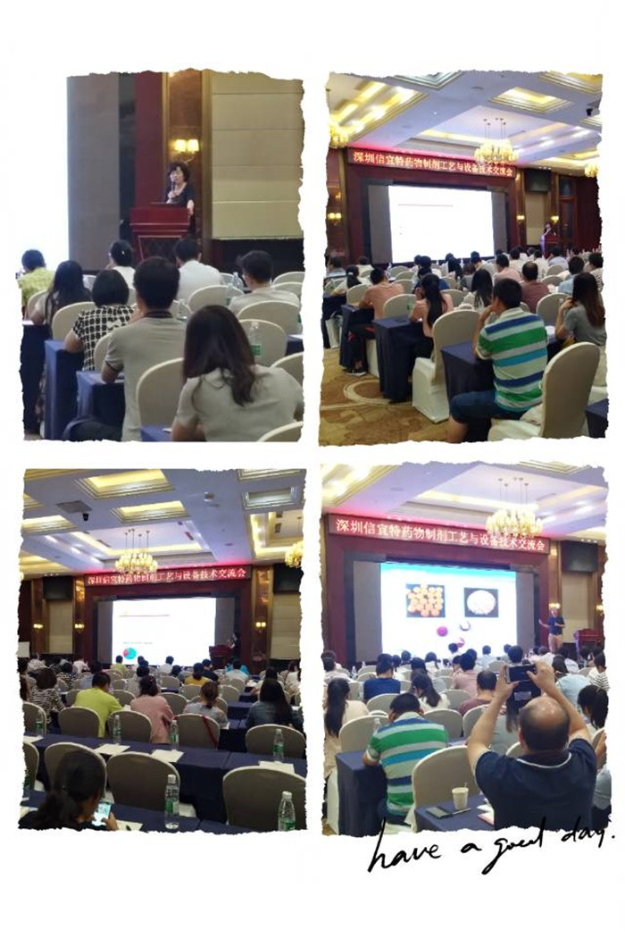 2018年06月13日~22日,深圳信宜特藥物制劑工藝與設備技術交流會如期舉行,我們邀請到沈陽藥科大學崔福德教授、浙大李文龍博士做專題講座,同時,還邀請到了卡樂康區域技術經理王雪杉做技術報告,此次技術交流會也獲得了重慶華邦、重慶藥友、科倫研究院、康弘藥業、云南白藥、昆明制藥、西安立邦、西安步長、西安交通大學、重慶醫科大學等醫藥企業同仁和高校師生的大力支持。