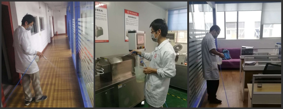 安全生產(chǎn),大家的健康是第一位,我們采取了一系列的防疫舉措,首先是全面消毒,涉及廠區(qū)的每個角落;其次是安排專人測量出入廠區(qū)人員體溫;會議采取網(wǎng)絡語音或視頻進行;就餐實行分批次分散就餐。